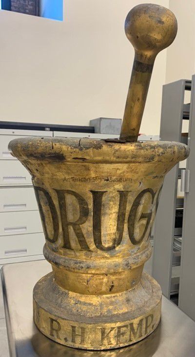 Mortar & Pestle Gold Leaf Trade SignEntry/Object ID