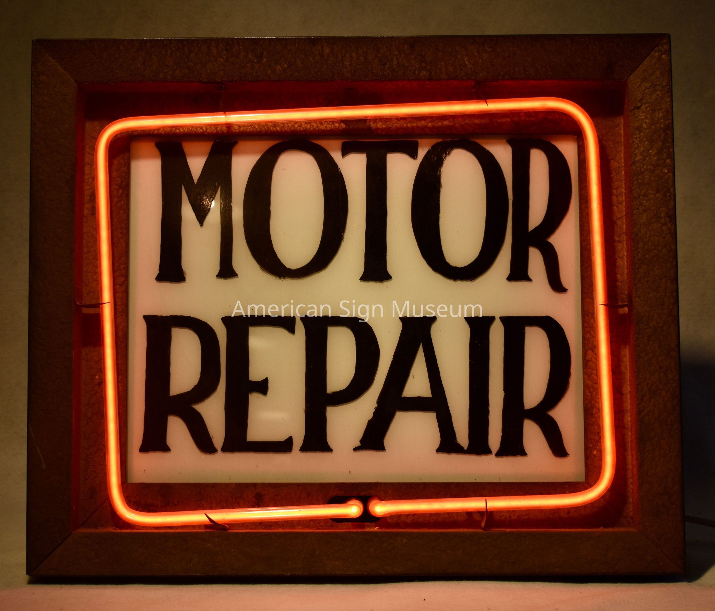 Motor Repair Glass-Faced Metal & Neon SignEntry/Object ID
