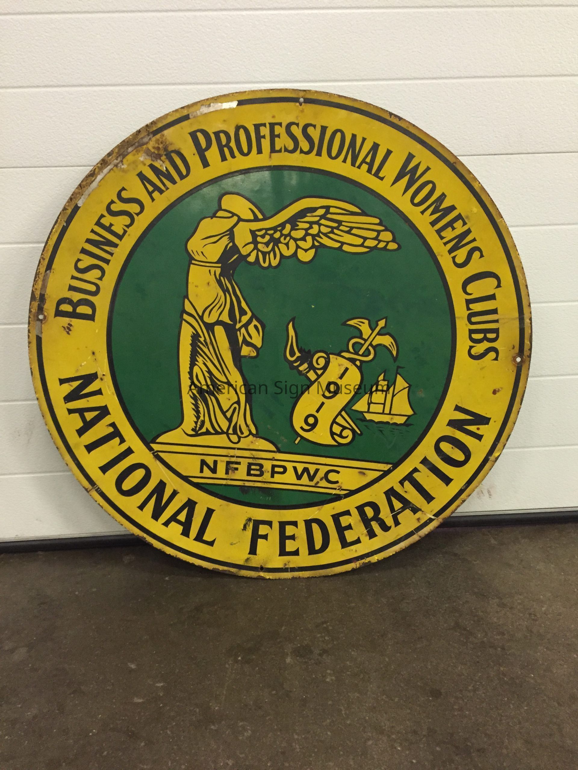 Single-faced, screen-printed tin sign is for, "Business and Professional Womens Club National Federation."Collection