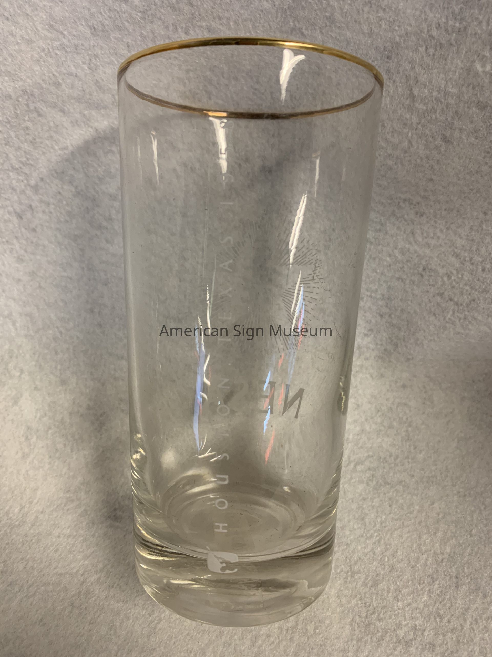 Screen-printed souvenir glass from NESA sign show in Houston in 1958.Collection
