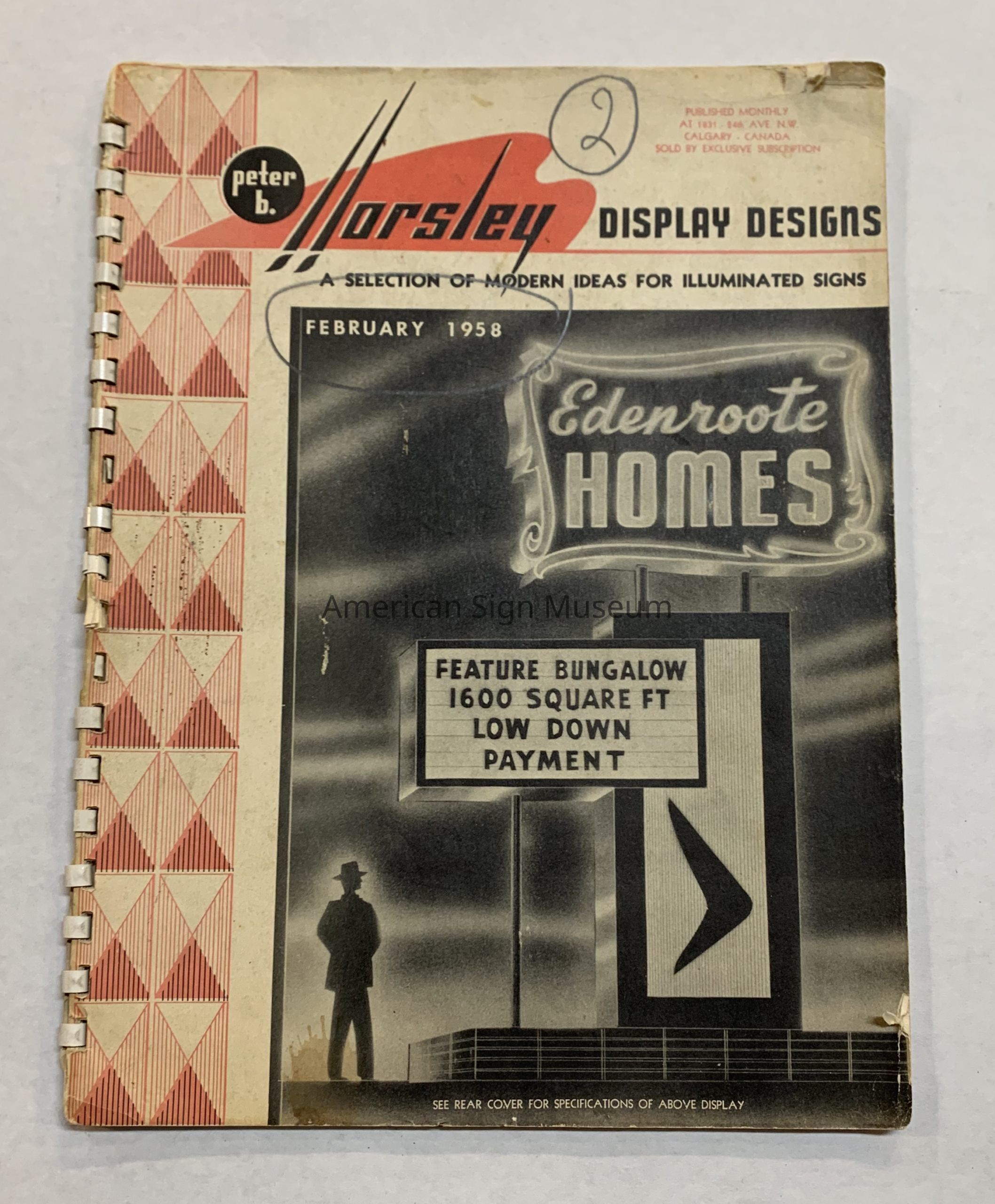 Peter B. Horsley Display Designs: A Selection of Modern Ideas for Illuminated Signs. February 1958, Calgary, Alberta, Canada.Softbound with rings; B&W illustrations; 18 pagesDimensions