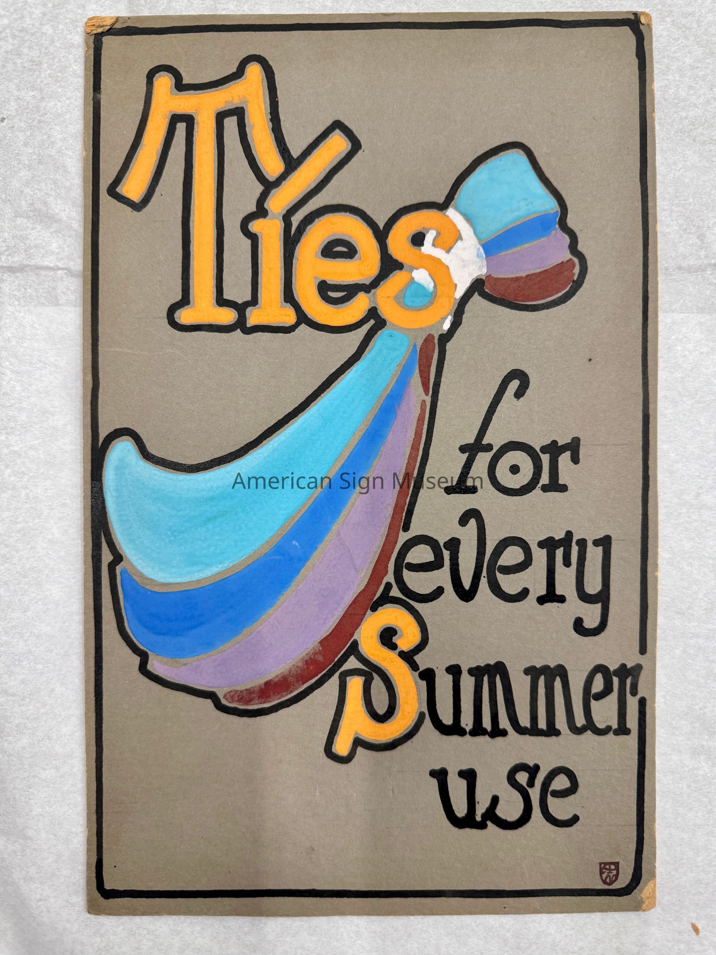 Sample handlettered showcard by Pfister Art Service, Niles, MI, reads, "Ties for every use."Collection