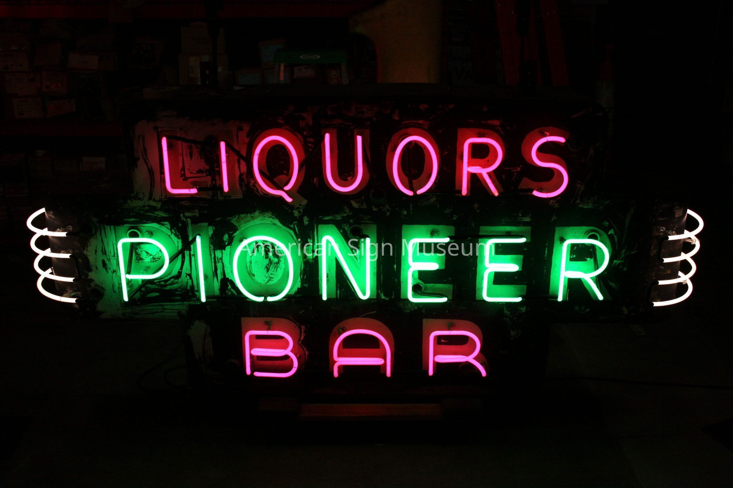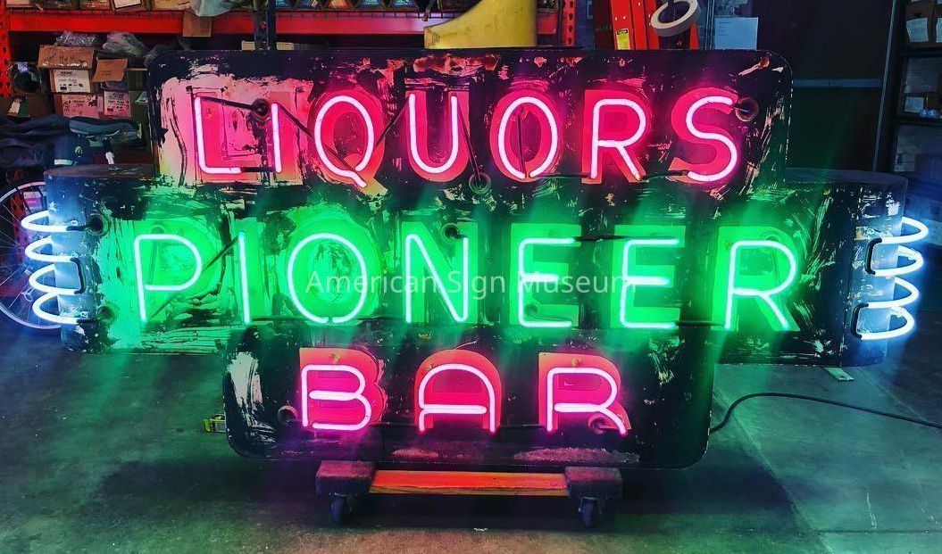 From around 1948, this is a neon-illuminated sign that used to hang at the Pioneer Bar, 139 East Pearl Street in Lima, OH.Collection