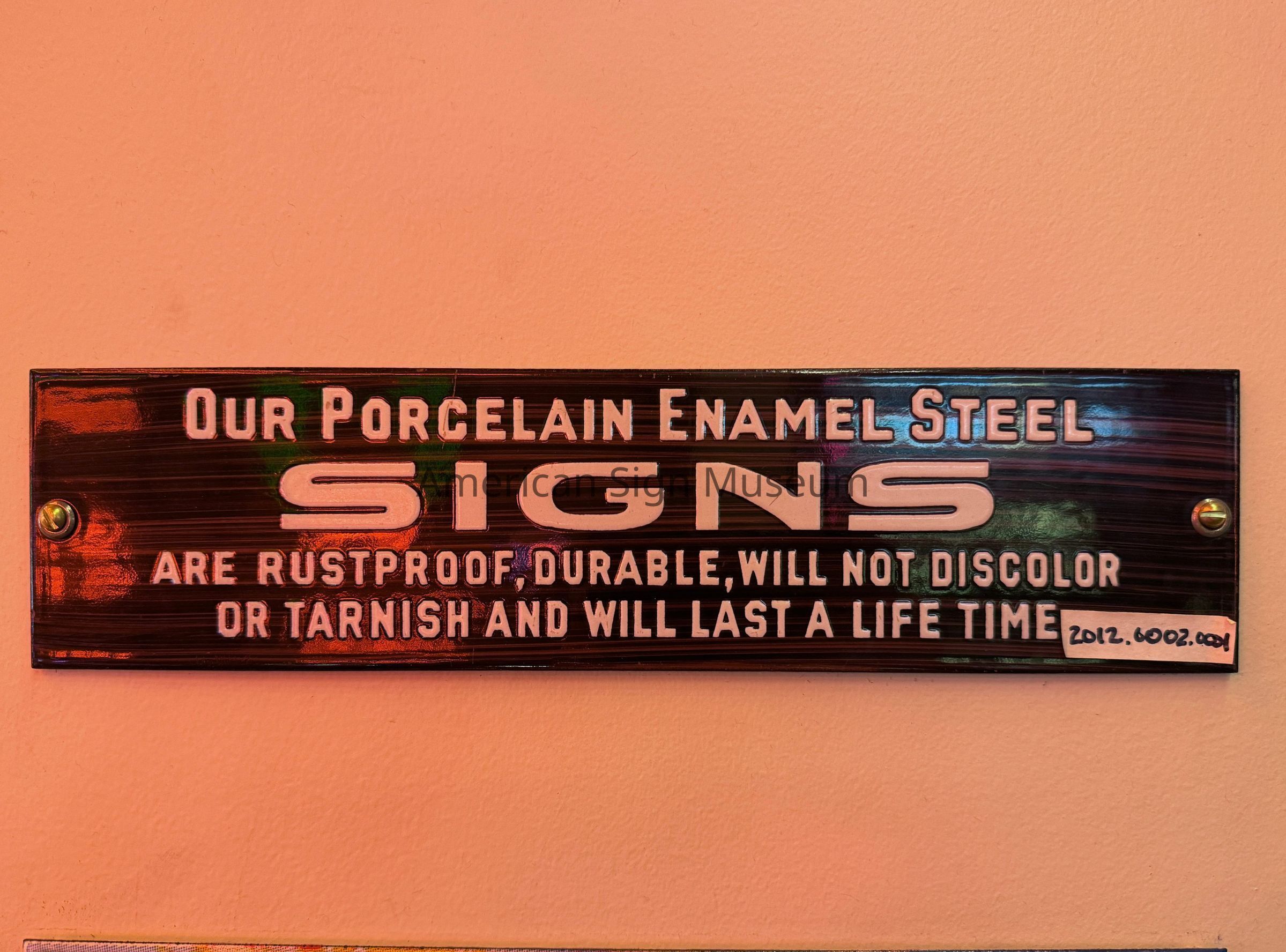 A 1950s era sign tag for a porcelain enamel sign manufacturer.Collection