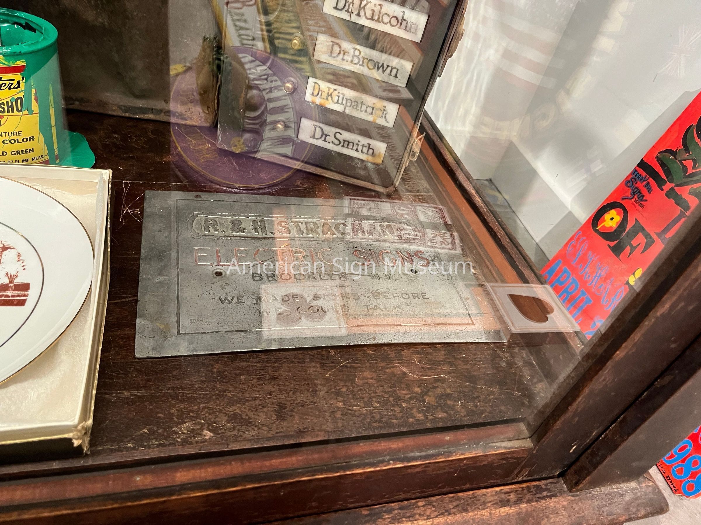 metal sign tag - Reads: R & H Strachan Inc. Electric Signs, Brooklyn, NY "We Made Signs Before We Could Talk"Collection
