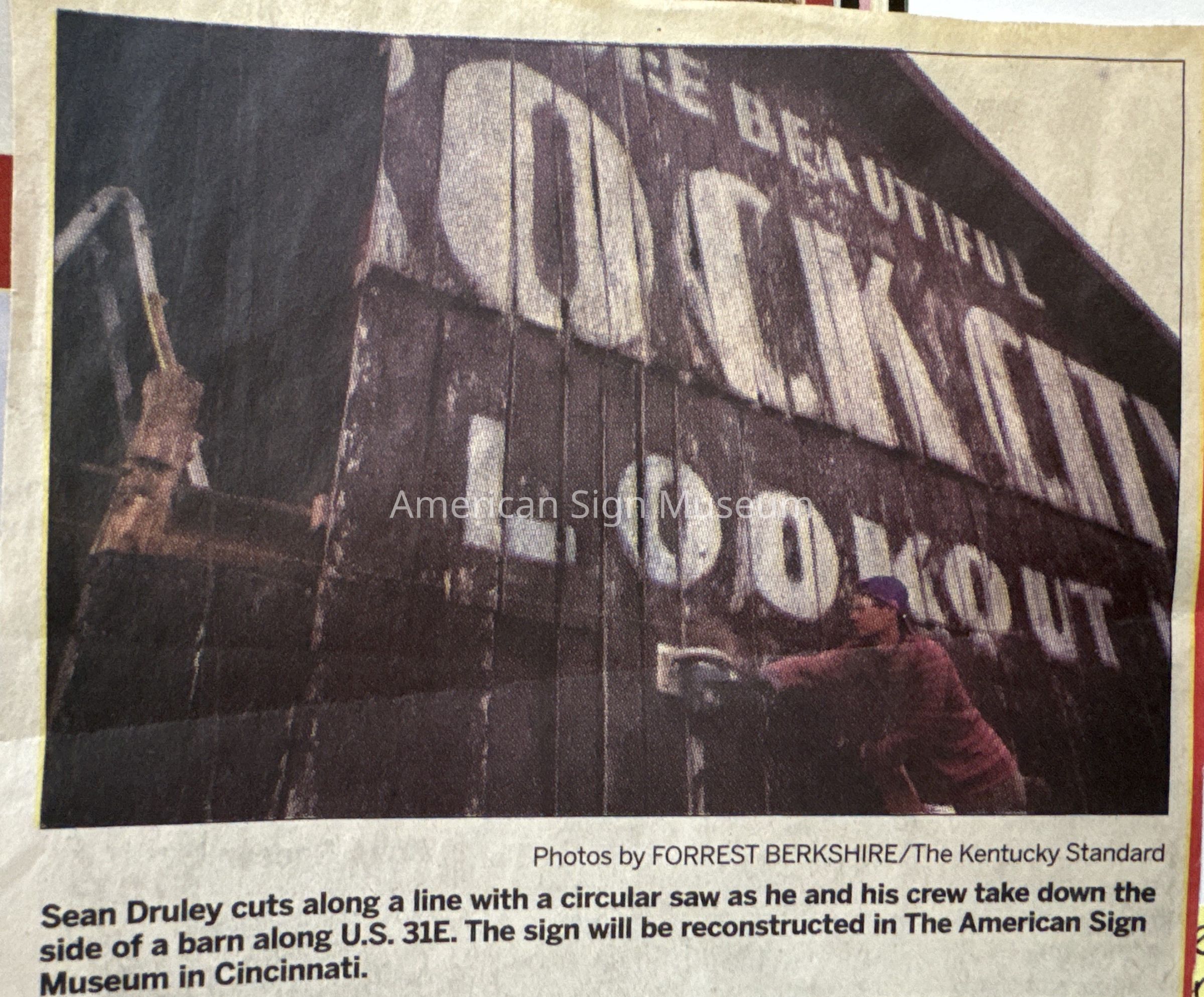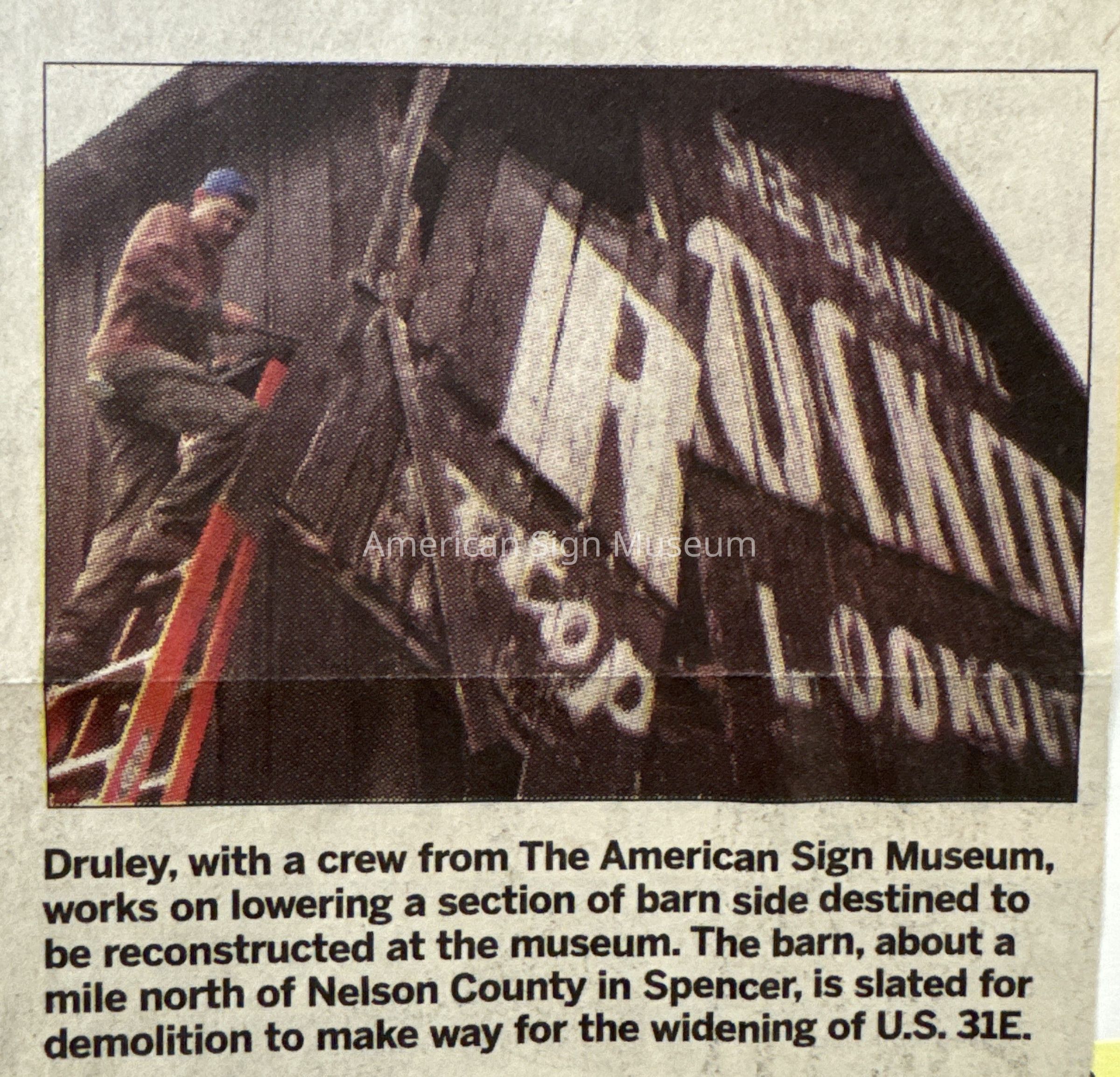 This is one side of a barn that was on U.S. 31E in Spencer County, KY which is east of Louisville. When the barn was slated for demolition, the Museum was able to preserve the signage/lettering painted upon its side: See Beautiful Rock City atop Lookout Mountain.