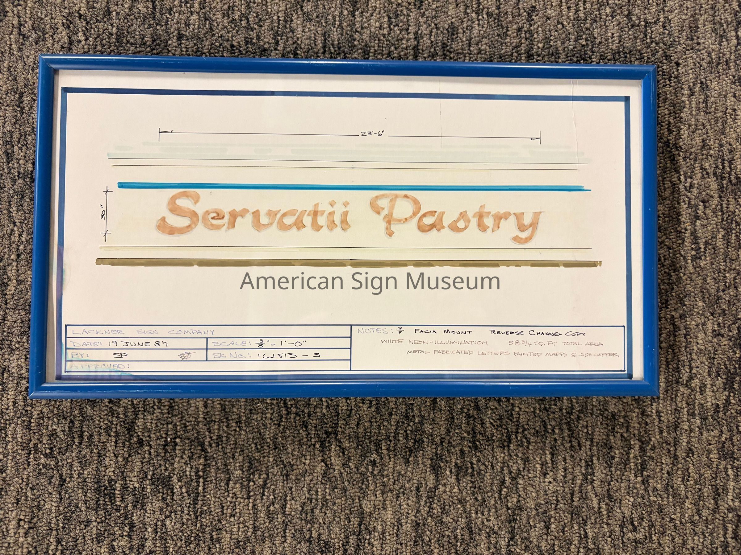 Hand-rendered sign sketch for Servatii Pastry by the Lackner Sign CompanyCollection