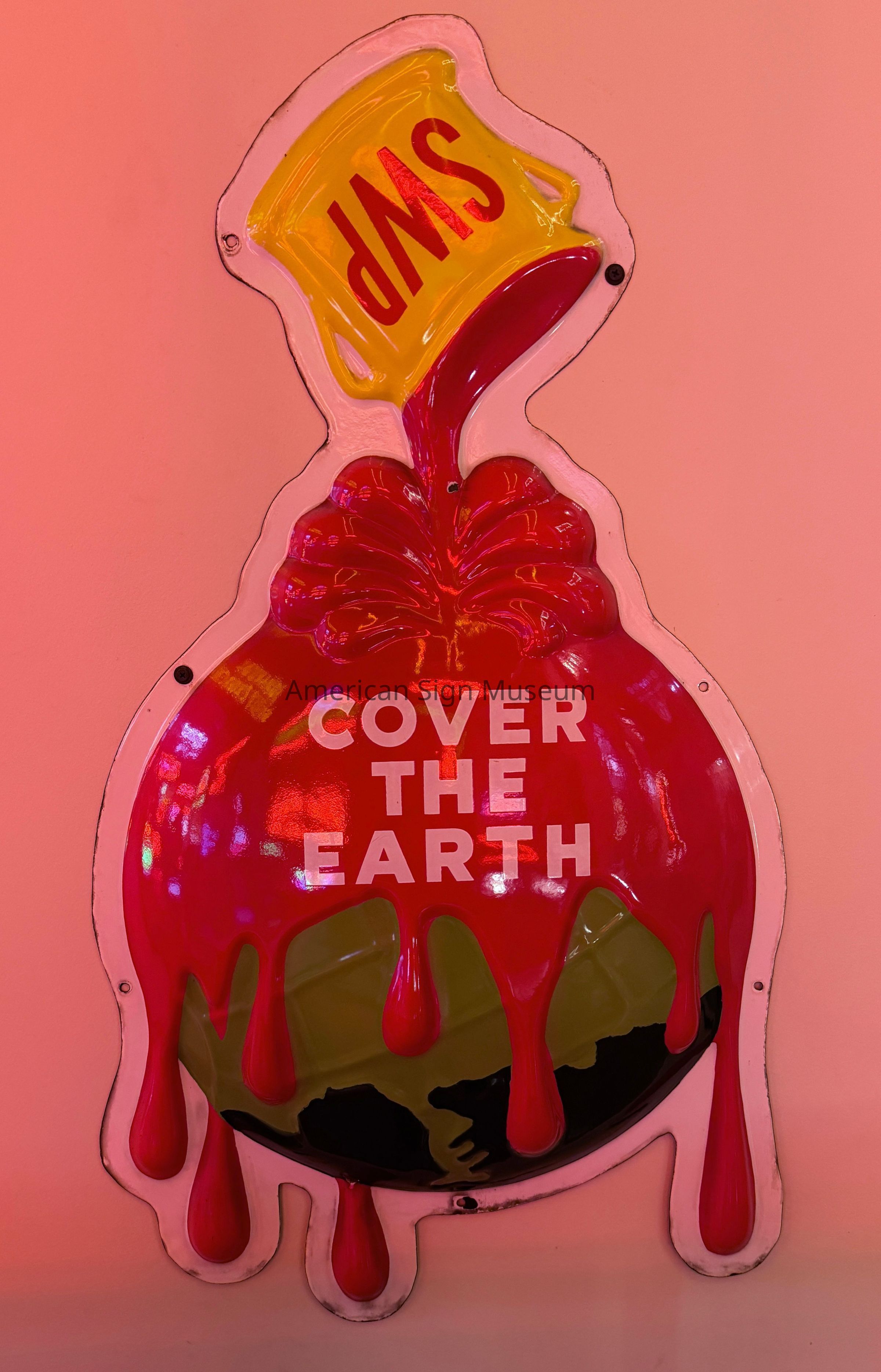This multi-colored, embossed porcelain enamel sign for Sherwin Williams features the iconic “Cover the Earth” theme.Collection