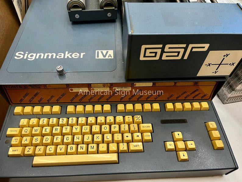 Gerber Signmaker IVA with original manual in addition to various supplies. Sign shops would use the Signmaker to create die-cut adhesive letters in various fonts and sizes.
