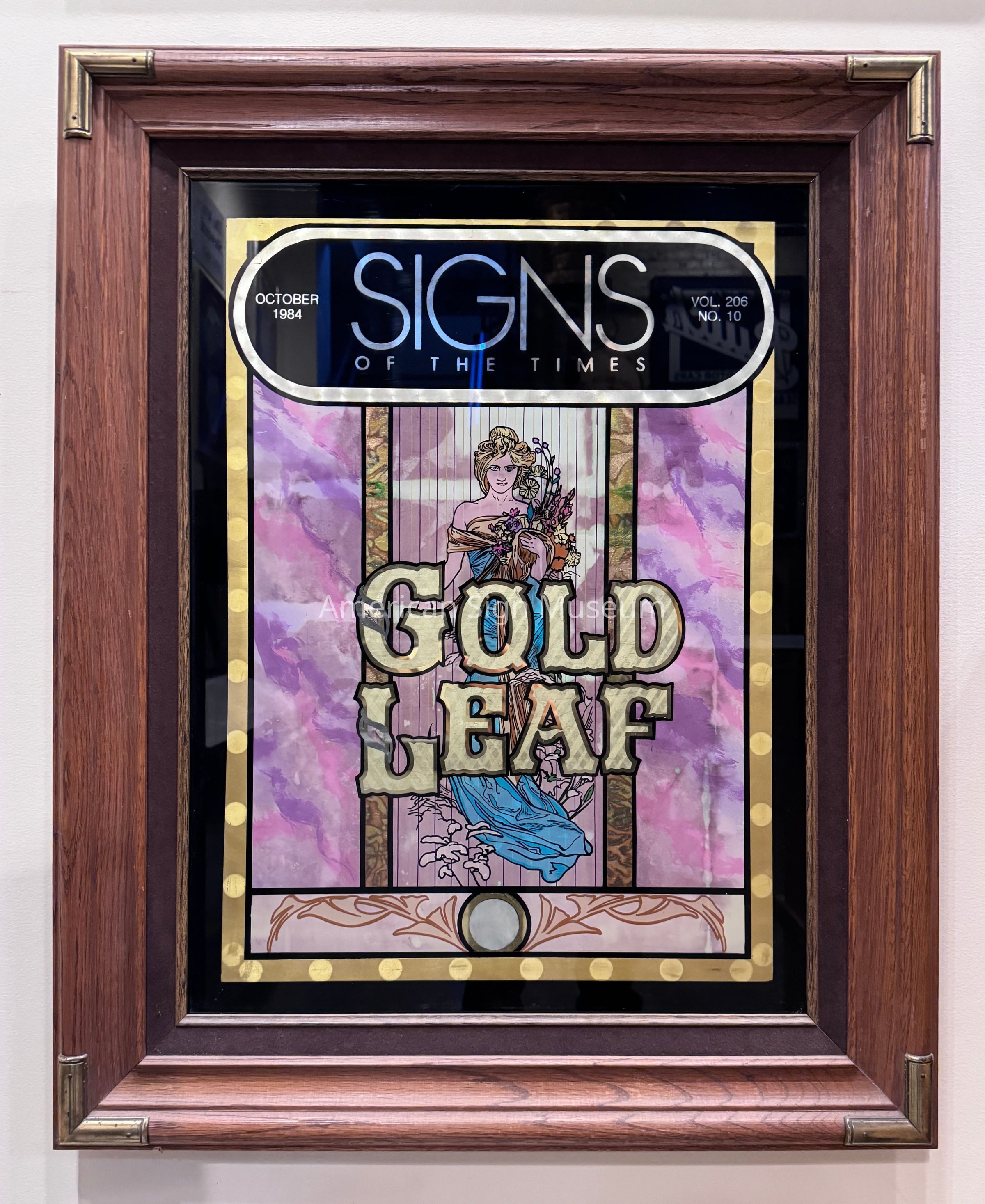 Signs of the Times magazine published themed issues from time-to-time at the end of the last century, including several issues themed around gilding. Museum founder, Tod Swormstedt, who was an editor at the time, commissioned gilded glass pieces to serve as the covers for three of these themed issues.