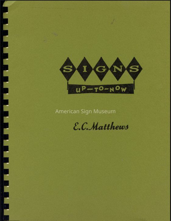 Signs Up-To-Now by E.C. Matthews. Published by Sign Book Company, St. Louis, MO: 1967.