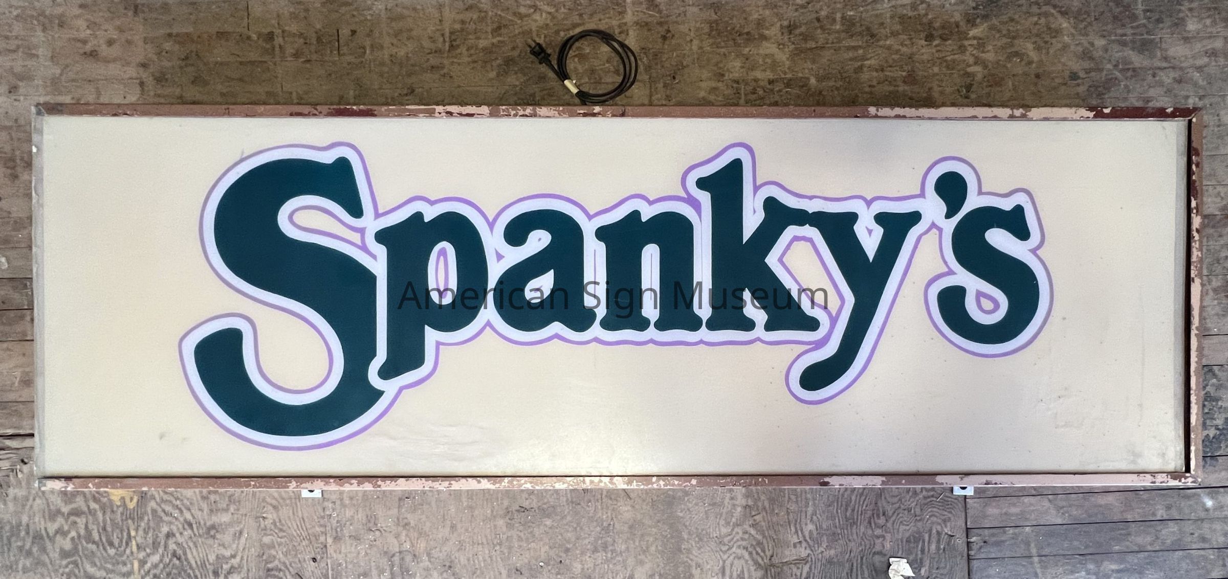 The Spanky’s sign was saved by Urban Sites, a local property management company, when it removed the sign from its original location and stored it in a warehouse for serval years. The donation to the Museum was arranged when the warehouse building was sold.Collection