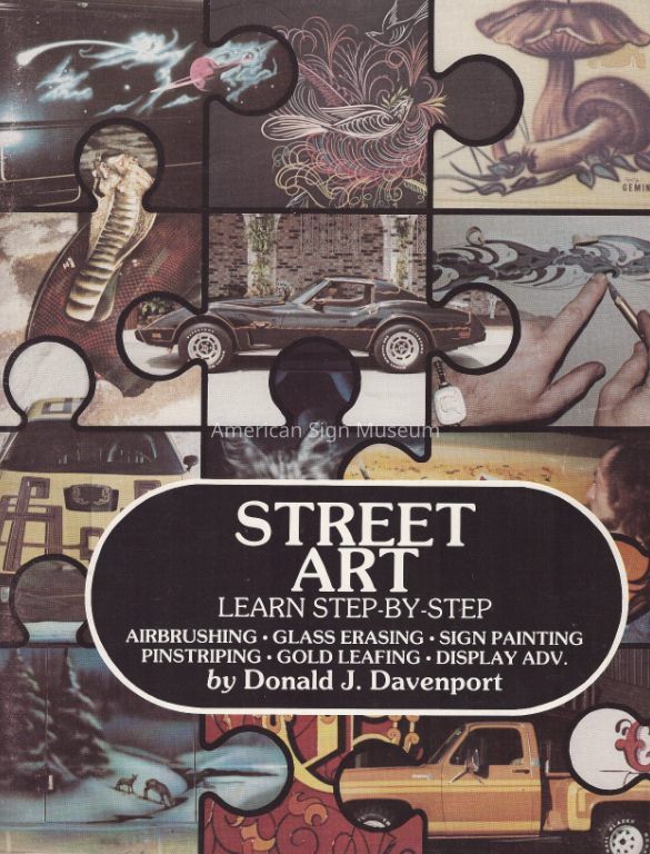 Street Art Learn Step-By-Step: Airbrushing-Glass Erasing-Sign Painting-Pinstriping-Gold Leafing-Display Adv. by Donald J. Davenport. Published by Gemini School of Fine Art and Airbrushing, Troy, MI: 1983.Softbound; Color illustrations; 55 pagesCollection