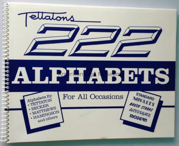 Tettatons 222 Alphabets for all Occasions (alphabets by Tettaton, Becker, Matthews, Hamingson, and others) by Lonnie Tettaton. Published by Nutwood Publishing Co., St. Louis, MO: 1983.Softbound with rings; B&W illustrations; 124 pagesCollection