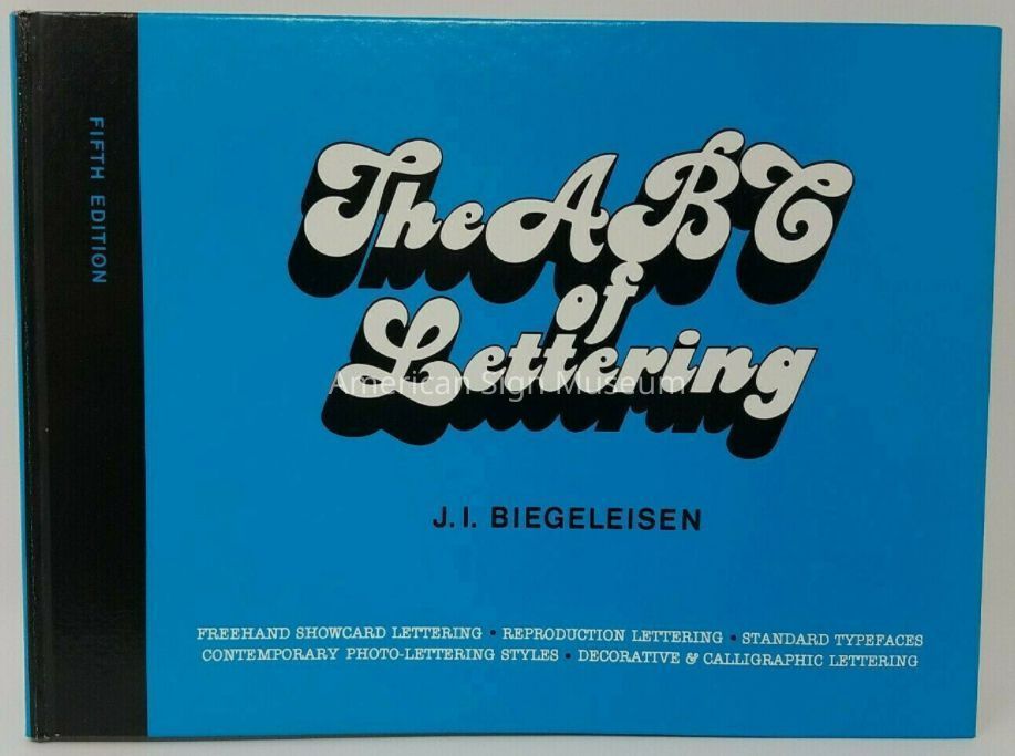 The ABC of Lettering by J.I. Biegeleisen. Published by ST Publications, Cincinnati, OH: 1986 (5th edition).Hardbound; B&W illustrations; 255 pages - (publisher info. , contents, and intro. pages not included in this printing)(See also 2000.0009.0165-0166 and 2000.0009.0168)"Freehand Showcard Lettering, Reproduction Lettering, Standard Typefaces, Contemporary Photo-Lettering Styles, Decorative Calligraphic Lettering."Collection