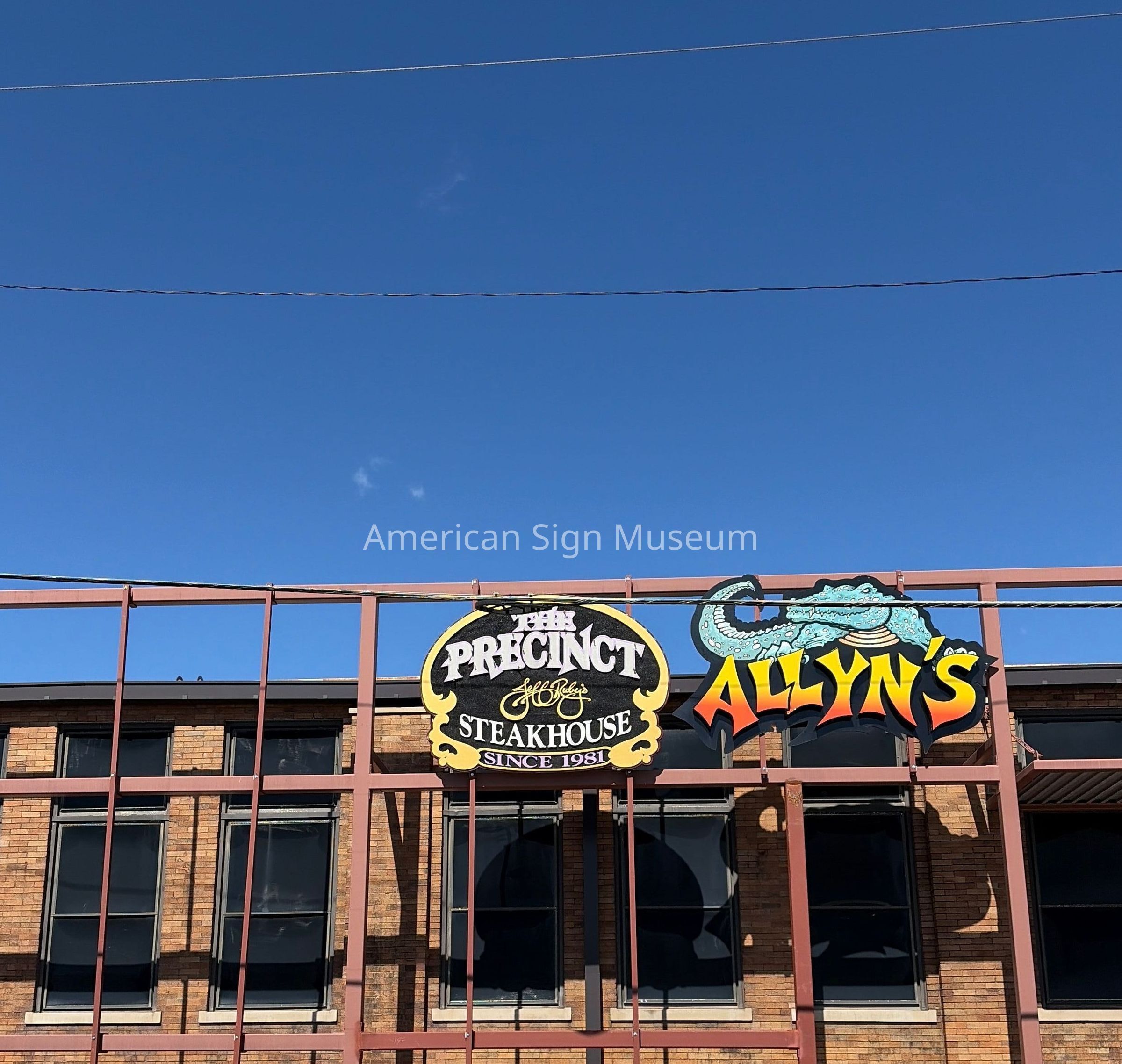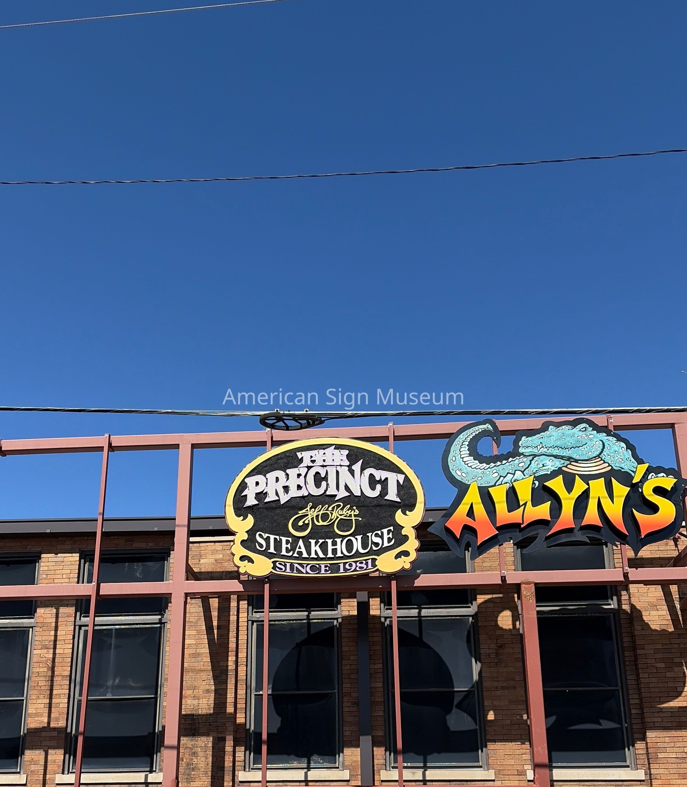 Original single-faced, neon illuminated sign reading 'The Precinct Jeff Ruby's Steakhouse since 1981'Collection