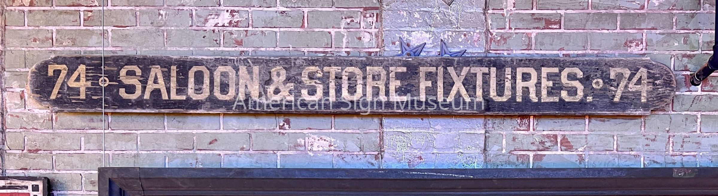 From around 1900, this is a double-sided wooden sign that, on one side reads "Ottman & Son," and the other side reads "Saloon & Store Fixtures." The wooden lettering and decorative areas are gilded with goldleaf, while its background is made from smalts.Collection