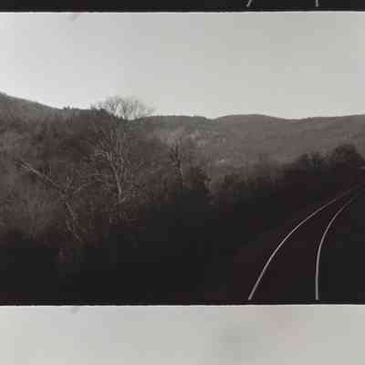 black and white footage taken while traveling by train