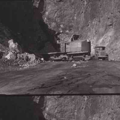trucks moving dirt and rock around