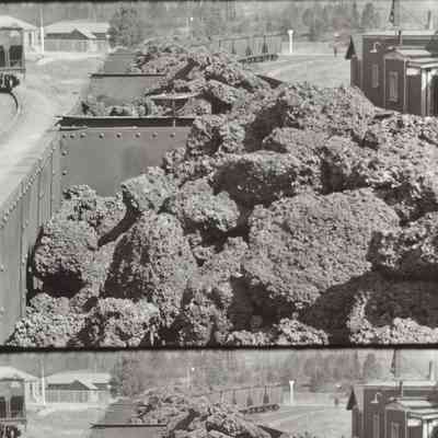train cars hauling rock or coal