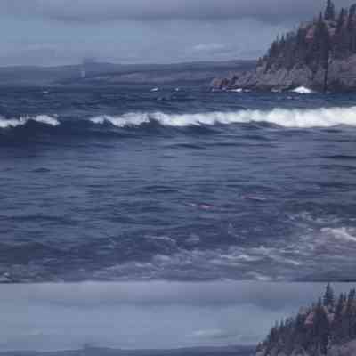 waves crashing against the shore
