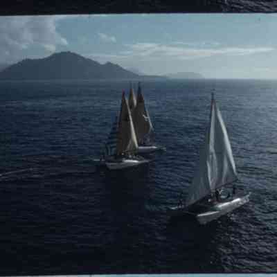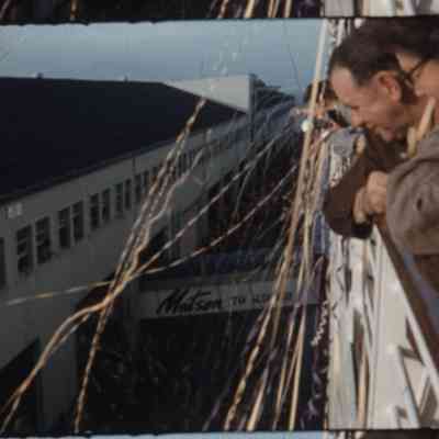 hawaii, San Francisco, sailboat, sail, ship, pineapple, hibiscus, hula, Damaske, 1950sDescription