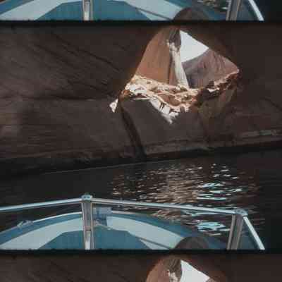 Louis Knobbe Collection Davis Gulch on Lake Powell in 1974 boating on Lake Powell views while boating near a canyon