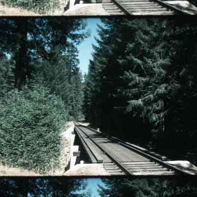 Louis Knobbe Collection Turner Ranch 1980 trees and hills railroad tracks and bridge