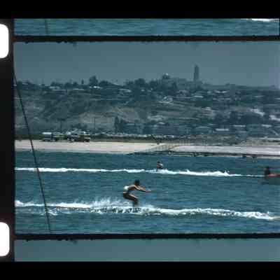 Louis Knobbe Collection people water skiing in the ocean people on the beach San Diego 1976