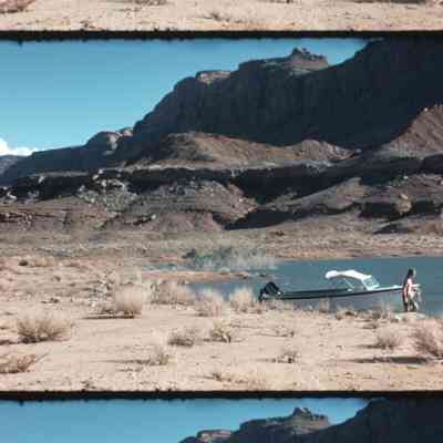 Louis Knobbe Collection 1974 kids playing in the water and swimming kid rowing a rowboat on the lake mountain lake