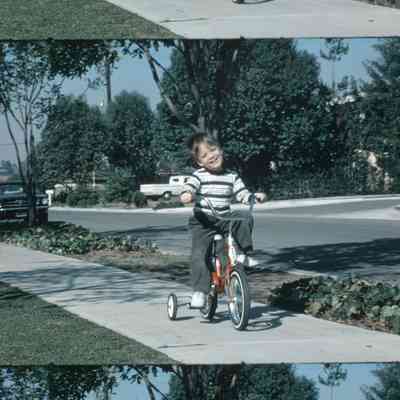 boy riding a tricycle