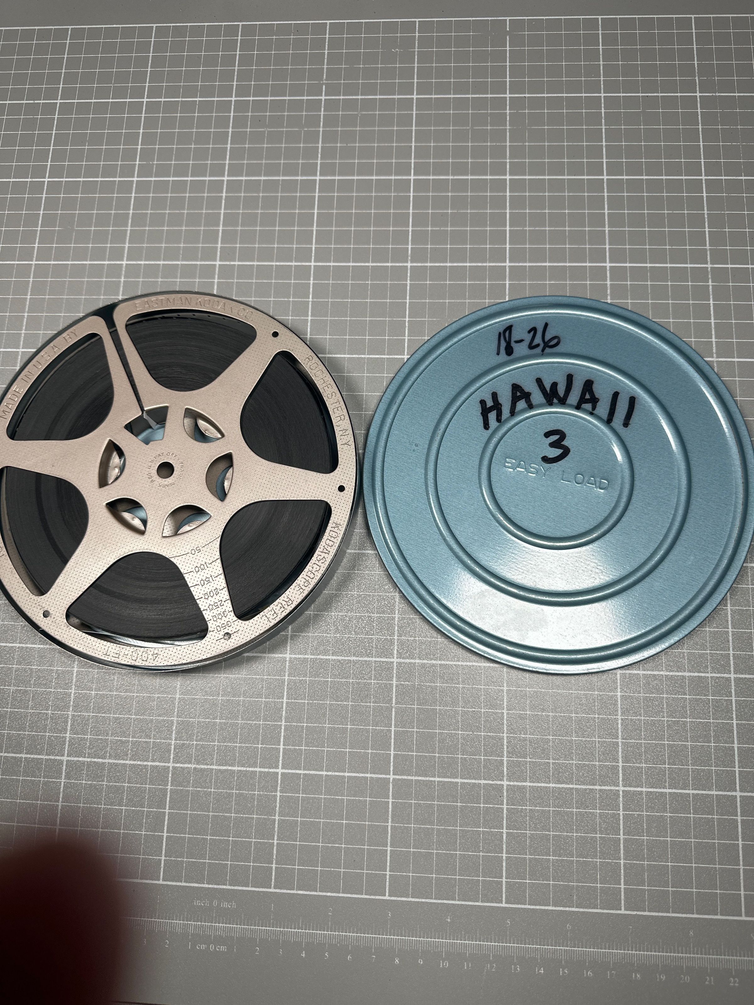 A hair is in many of the shots in the early frames. The end has a collection of volcano shots cut in the edit by Carl but are from a print.