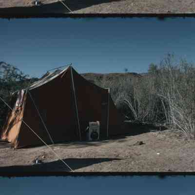 Louis Knobbe Collection Mallard Point Camp campsite next to the lake running water next to a campsite family tent on a camping trip