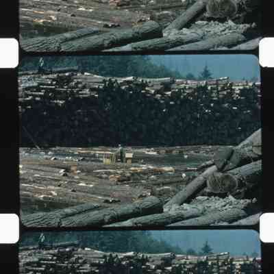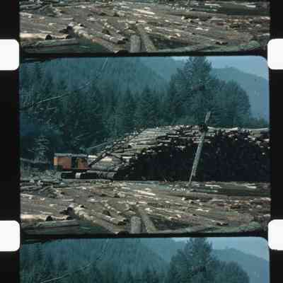 crane stacking logs