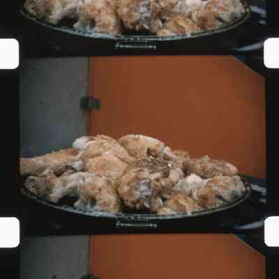 Making fried chicken camping in station wagon
