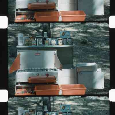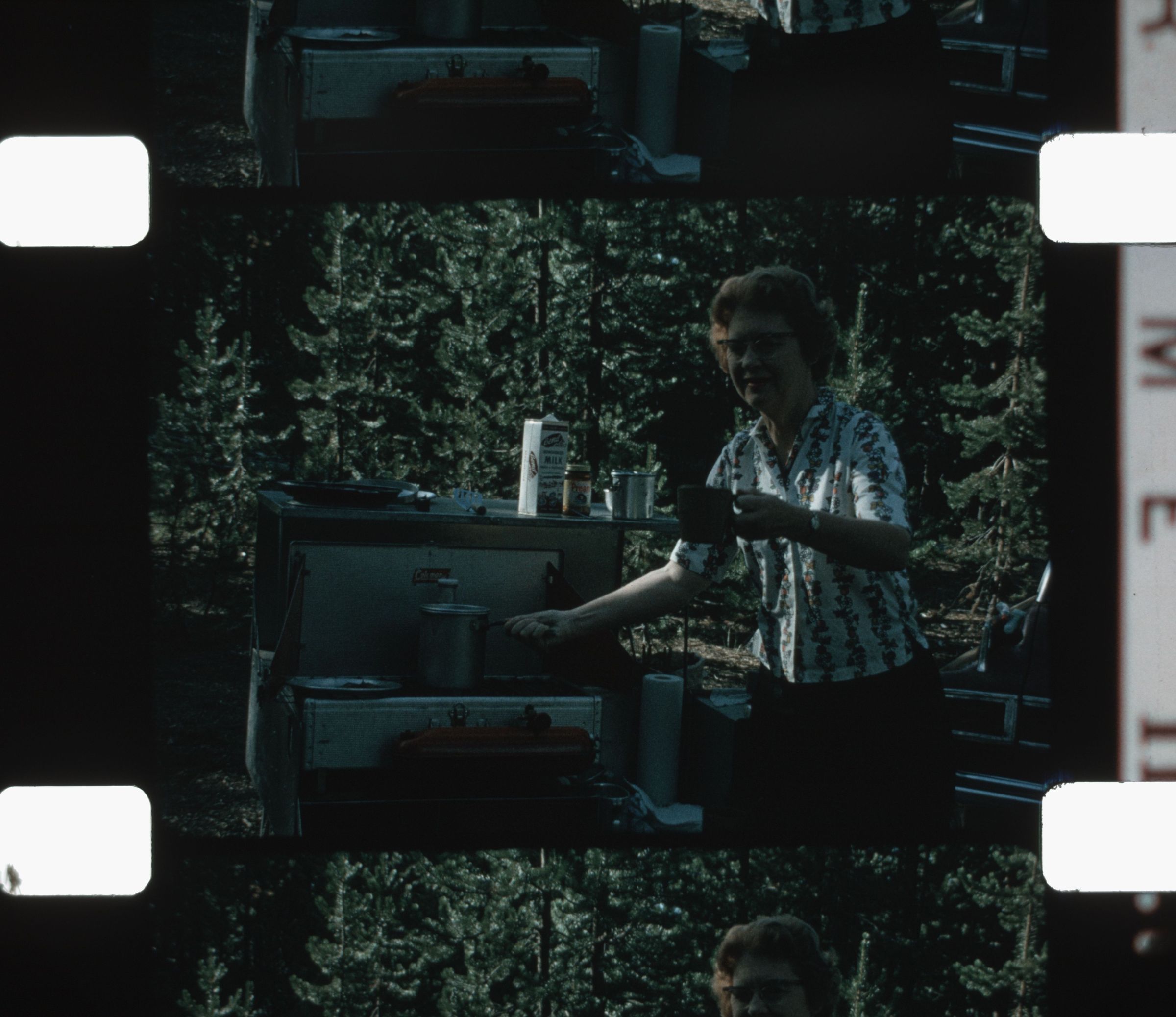 brewing coffee on camp stove and making pancakes