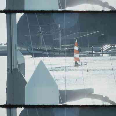 Louis Knobbe Collection lake marina boats at docks man standing on dock