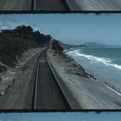 Louis Knobbe Collection train ride on the Pacific Coast train riding on the tracks train passing by and through communities train passing by the ocean and beach