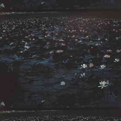 lily pads and flowers floating in the water
