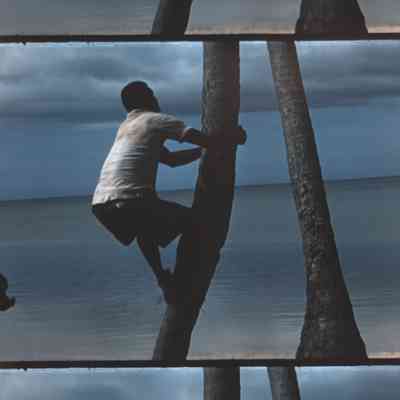 a man climbing a tree