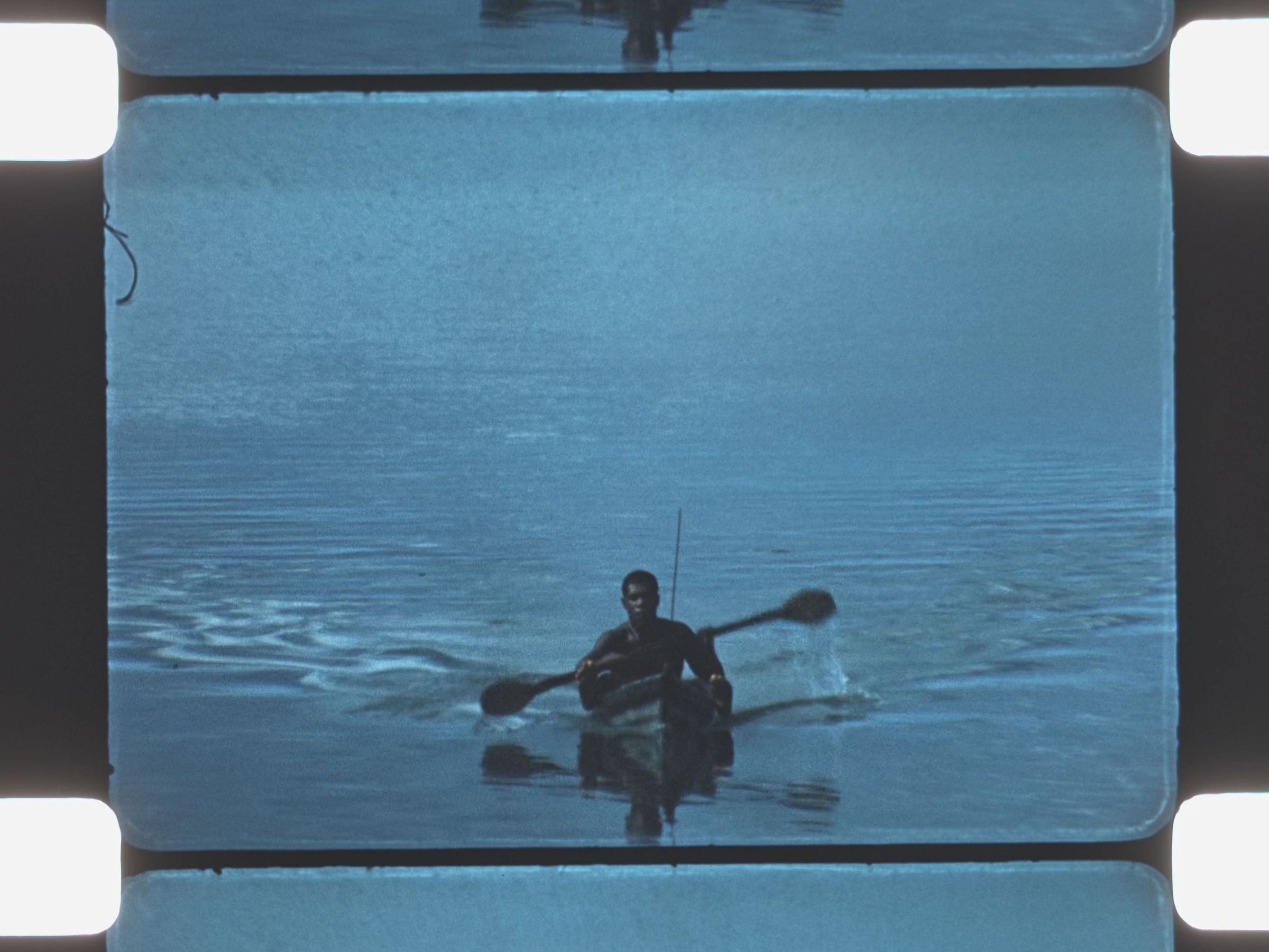 a man paddling a canoe