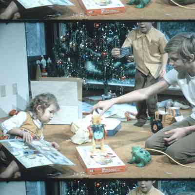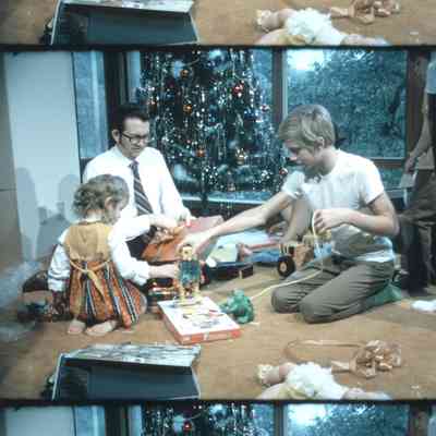 family opening Christmas presents