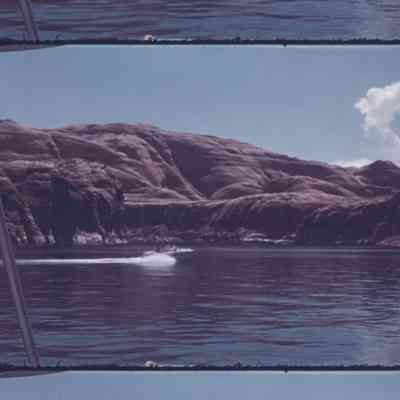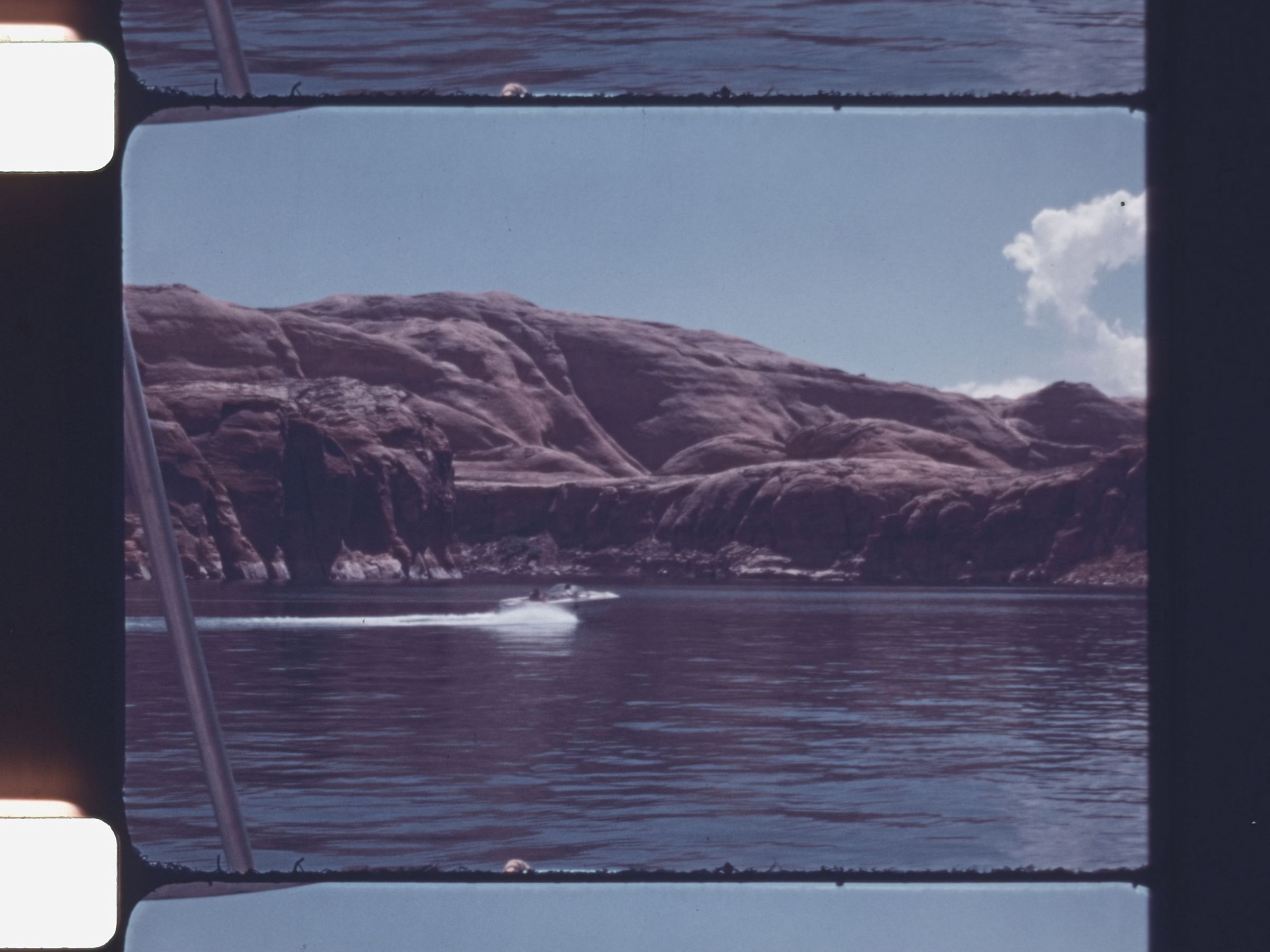 Louis Knobbe Collection Lake Powell 1972 people hiking in the canyons people hiking trails boating on Lake Powell boating through the canyons
