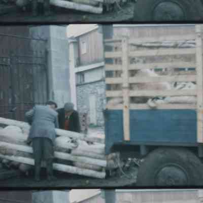 sheep being loaded through town