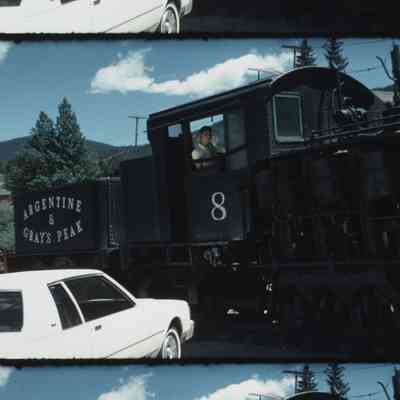 Louis Knobbe Collection steam train river boat views train at the station man in the train waving railroad tracks in the mountains