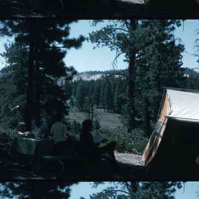 family eating picnic meal at campsite