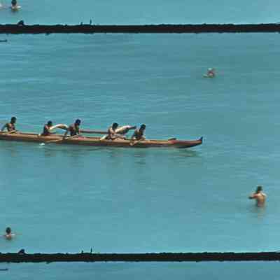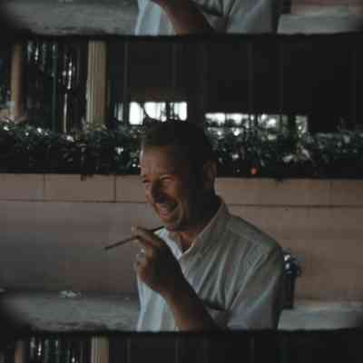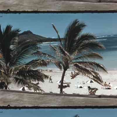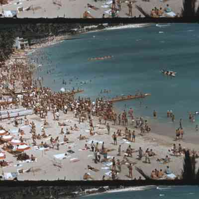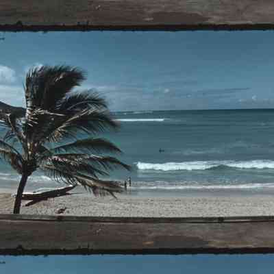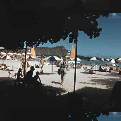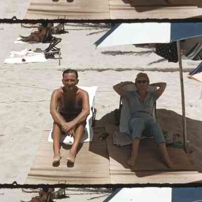 man tripping and falling on the beach as he picks up beach towels and umbrellas