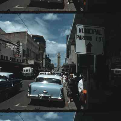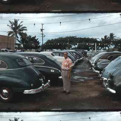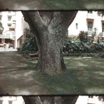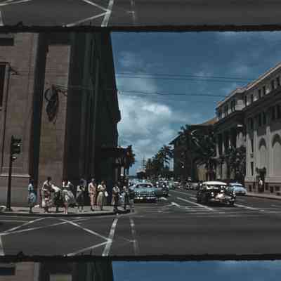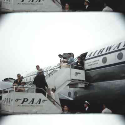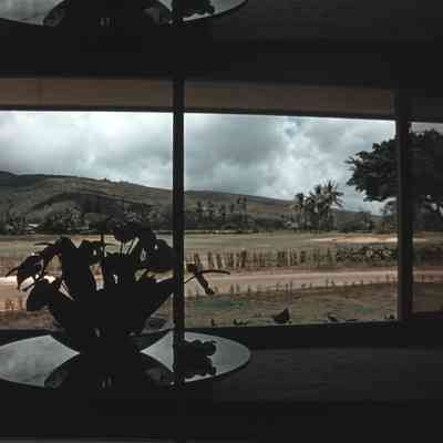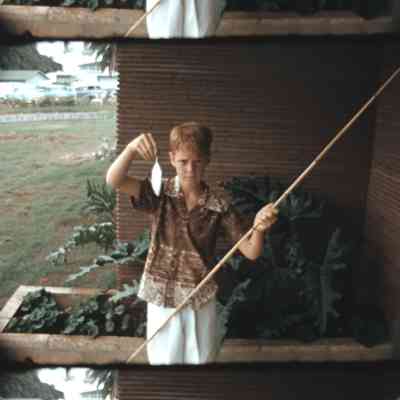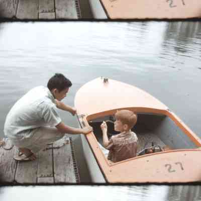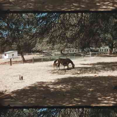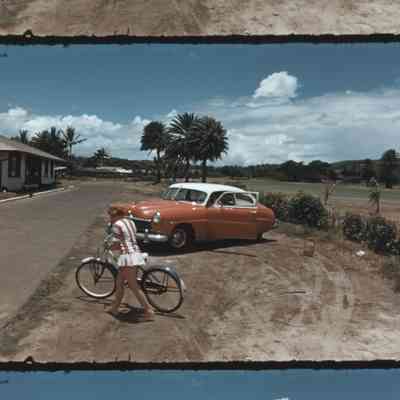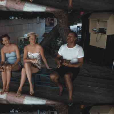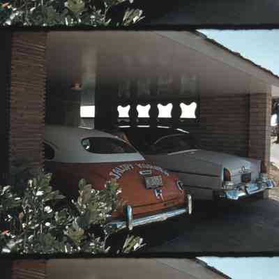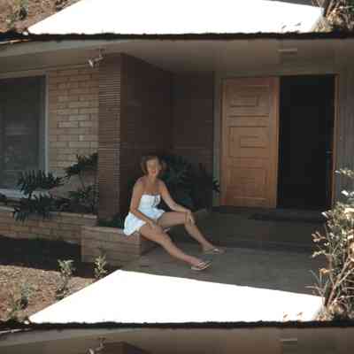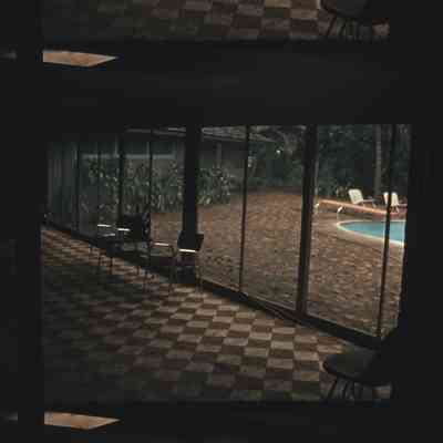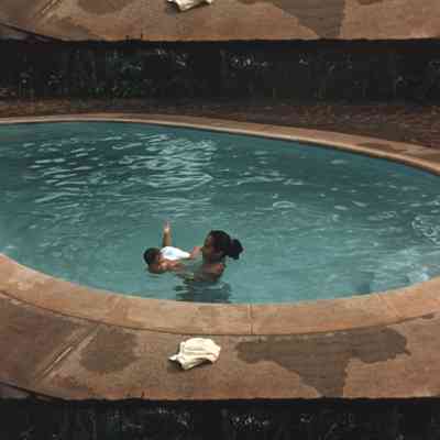 woman and child swimming in a backyard pool a ta midcentury modern house