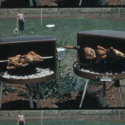 roasting chickens on a BBQ grill