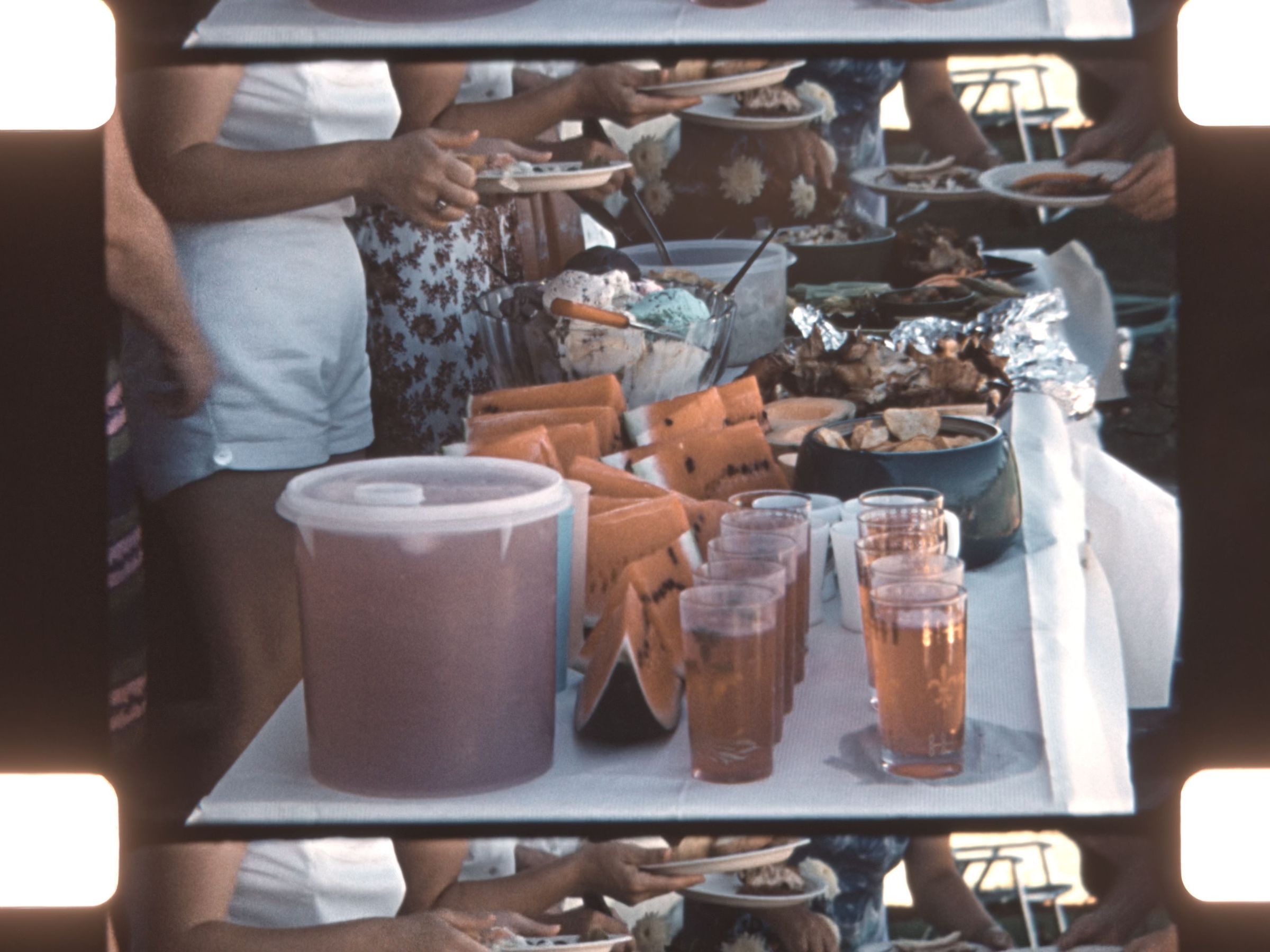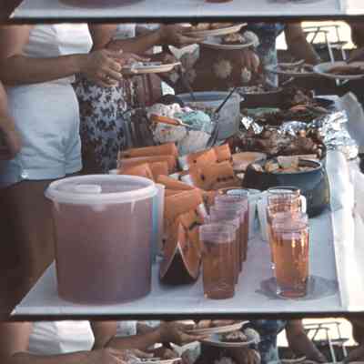 people eating at a potluck